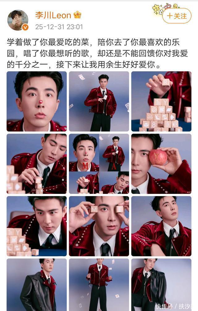 李川深情写道: 学着做了你最爱吃的菜,陪你去了你最喜欢的乐园,唱了你最想听的歌,却还是不能回馈你对我爱的千分之一,接下来让我用余生好好爱你。